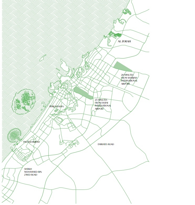 Al Zorah is a vibrant, master-planned destination rich in natural beauty and modern sophistication. The city offers: