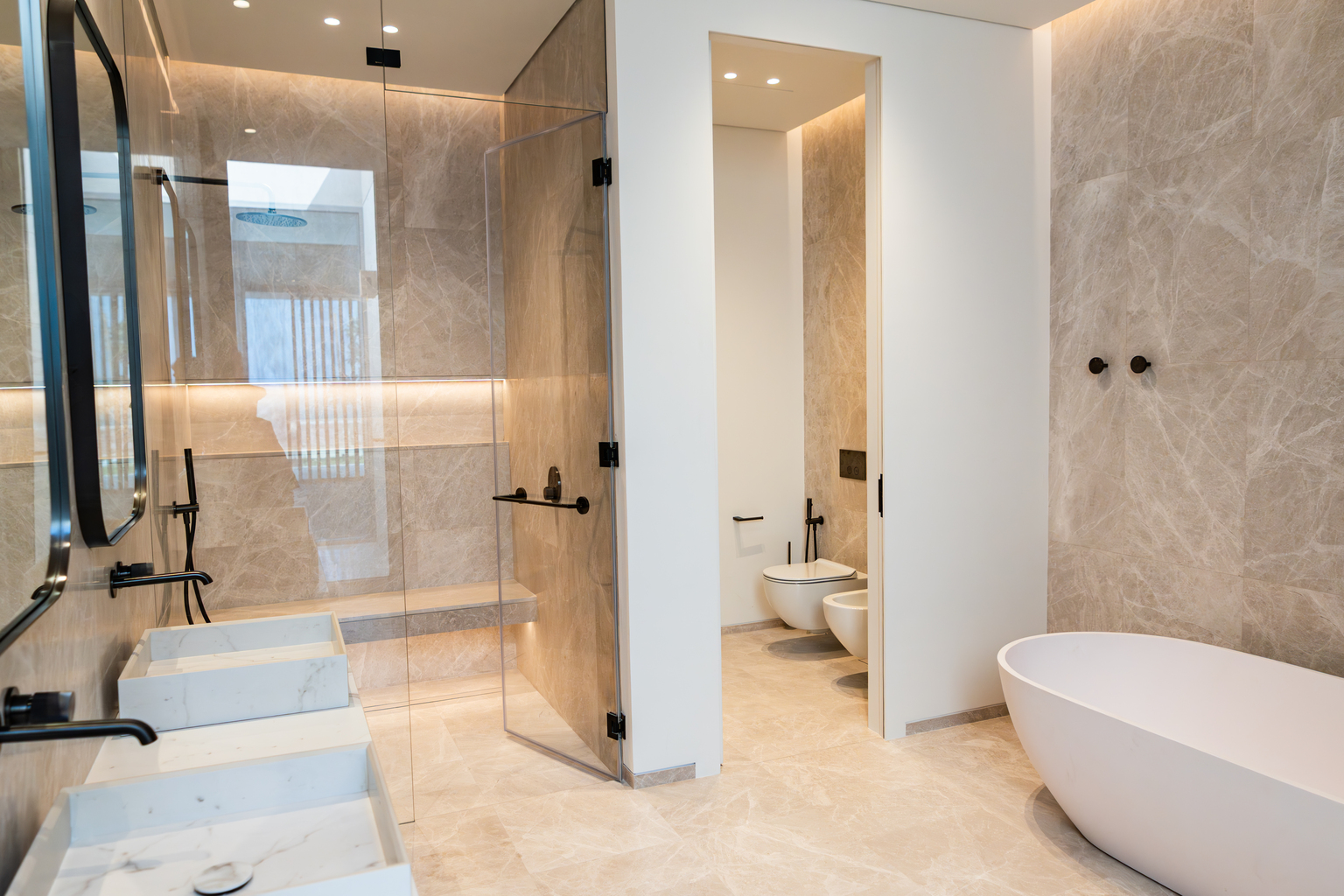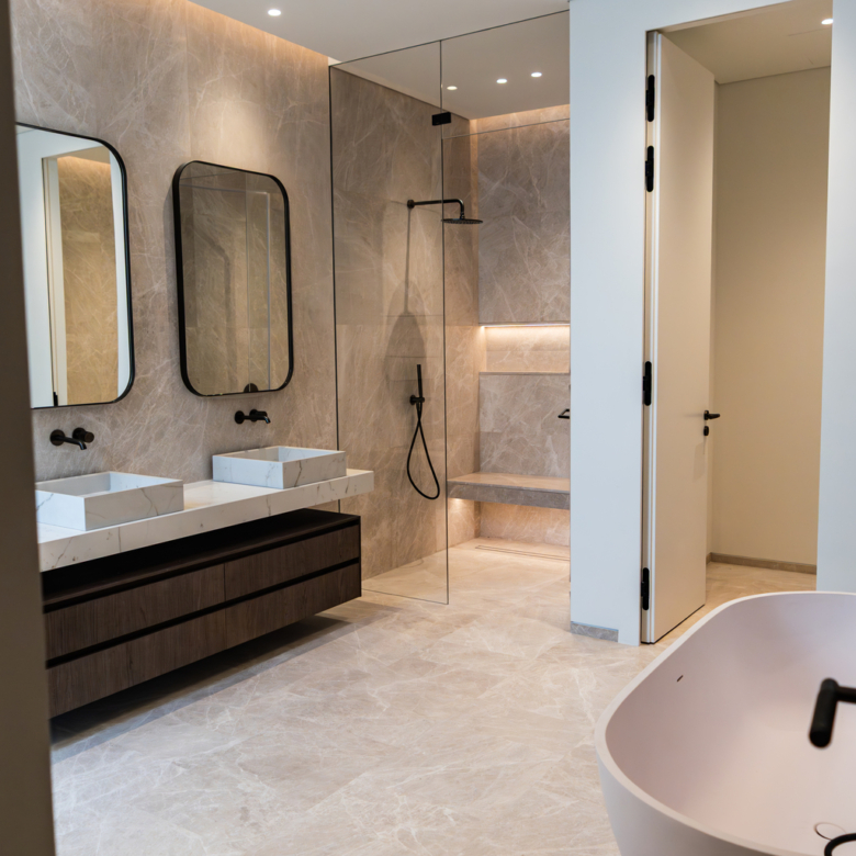 Sea Glints Mansions features a stunning collection of luxury villas available in different bedroom configurations. These residences are meticulously furnished and equipped with bespoke appliances, including an integrated coffee machine, electric stove, oven with extractor hood, steam oven, microwave, two dishwashers, fridge, freezer and wine cooler/cabinet from top brands like Miele.