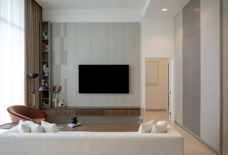 - A neutral palette exudes simple sophistication that highlights the luxurious finishing and ensures comfort and relaxation.