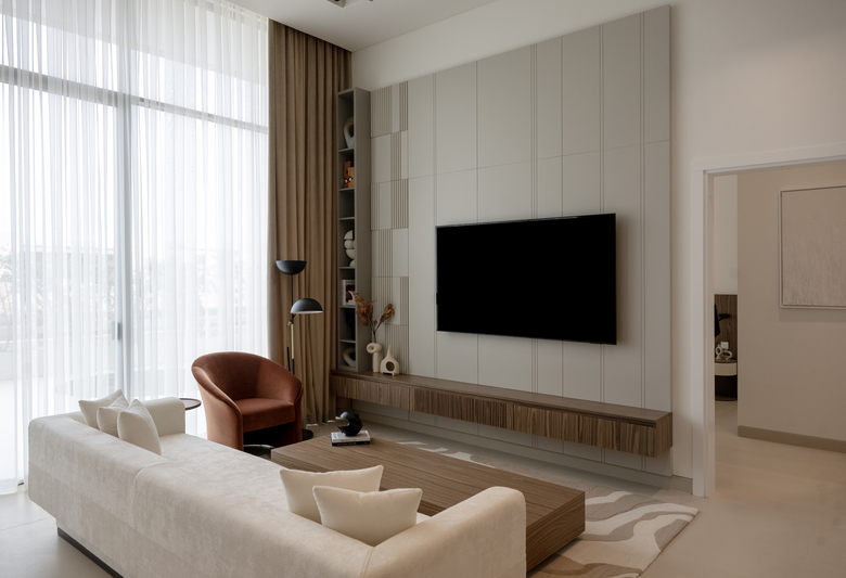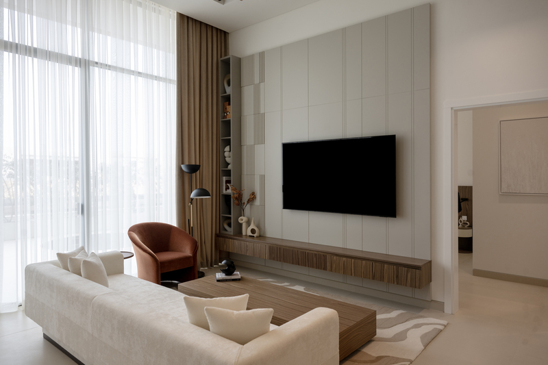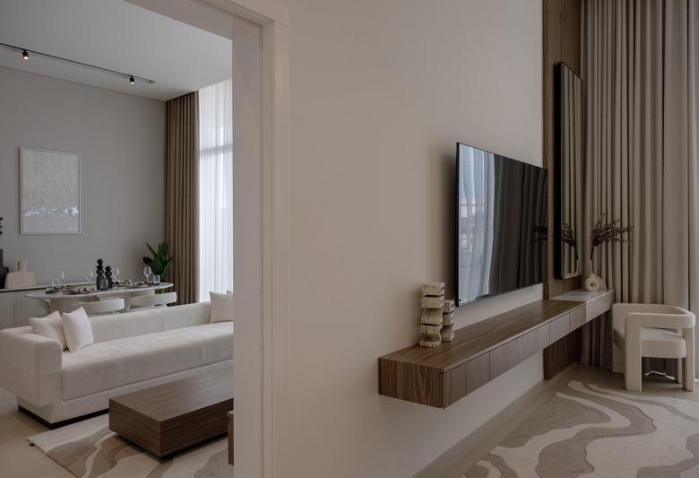 - A neutral palette exudes simple sophistication that highlights the luxurious finishing and ensures comfort and relaxation.