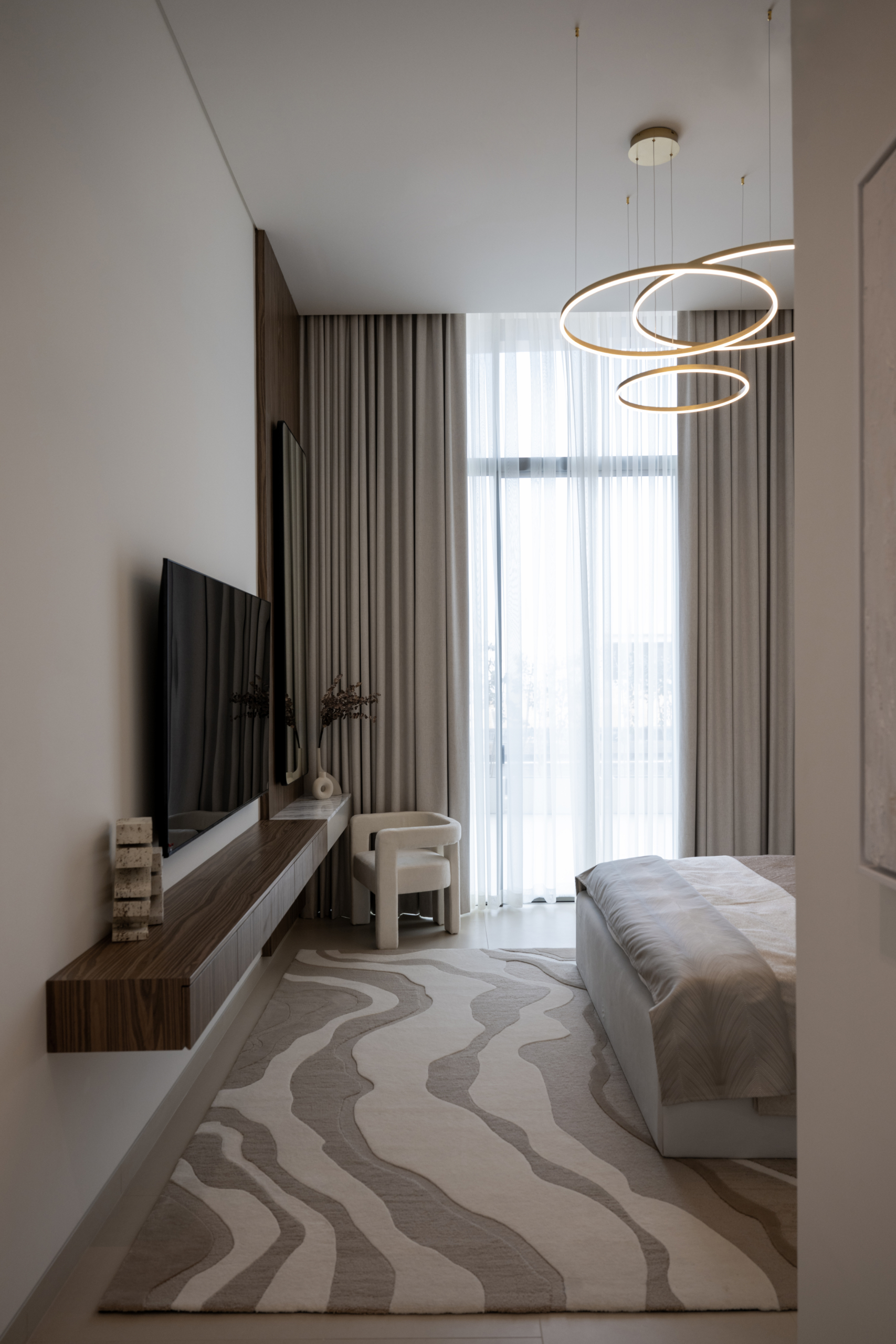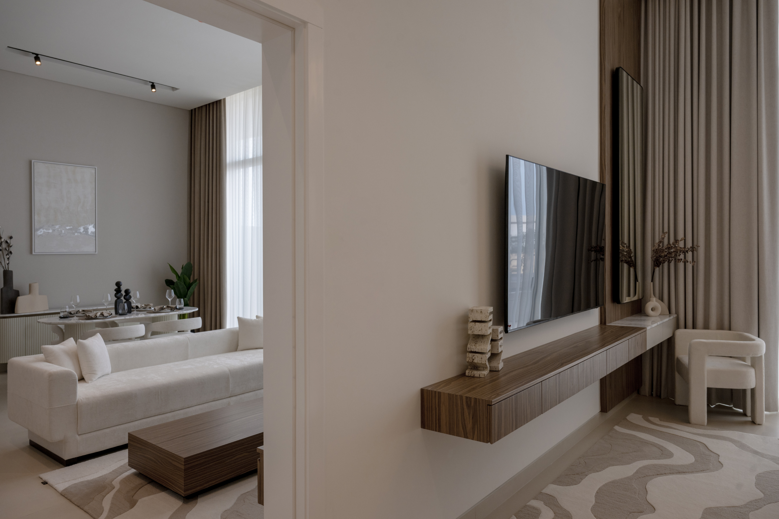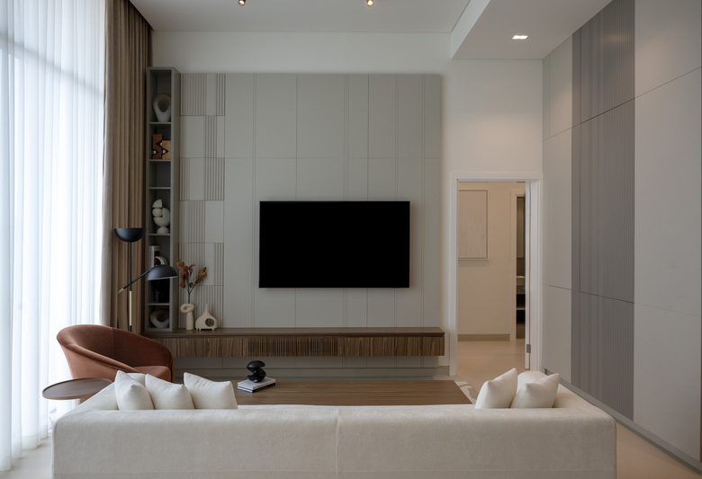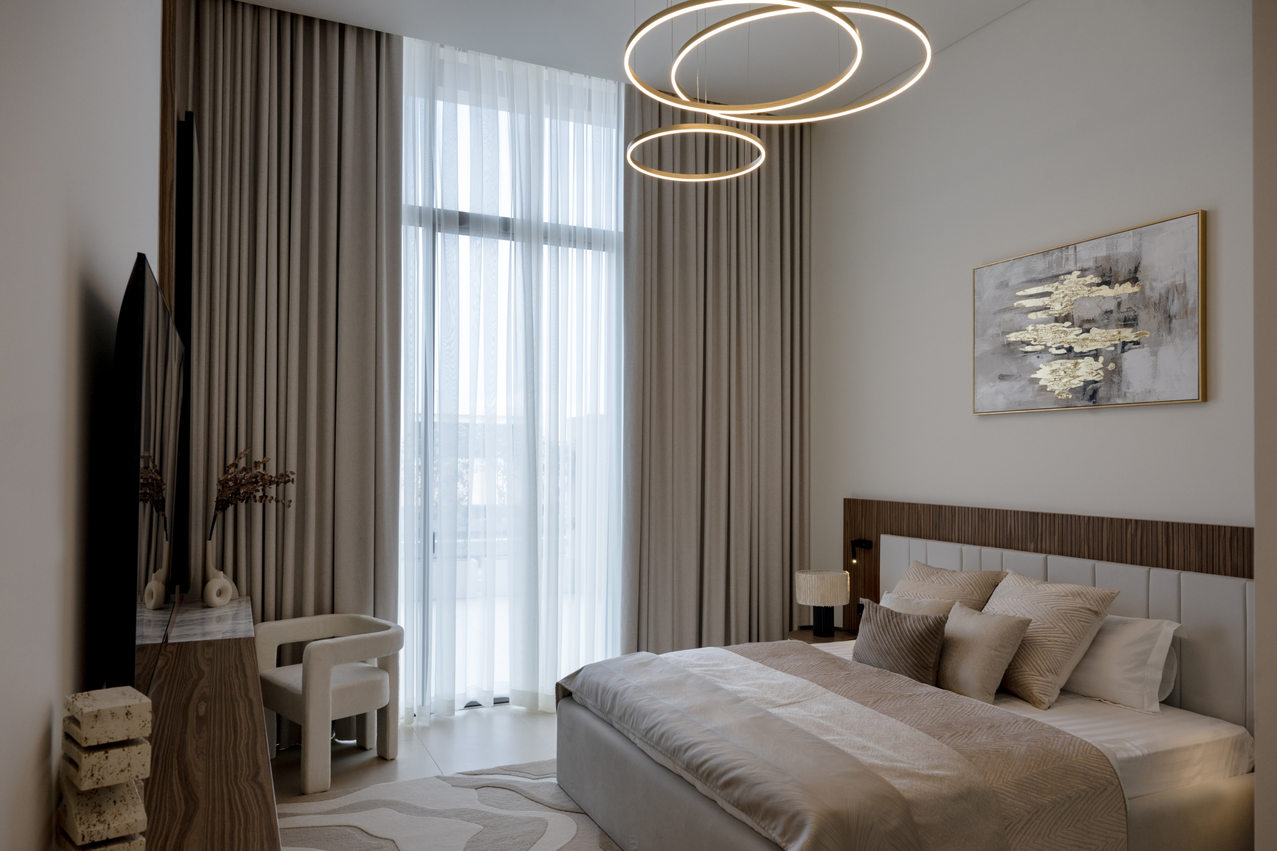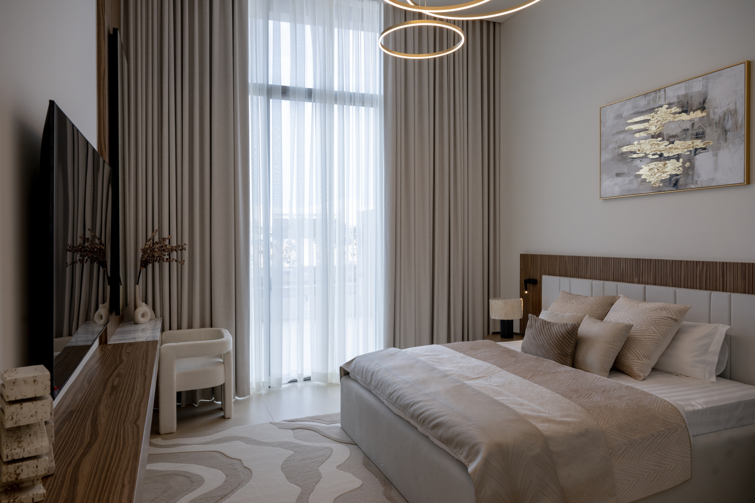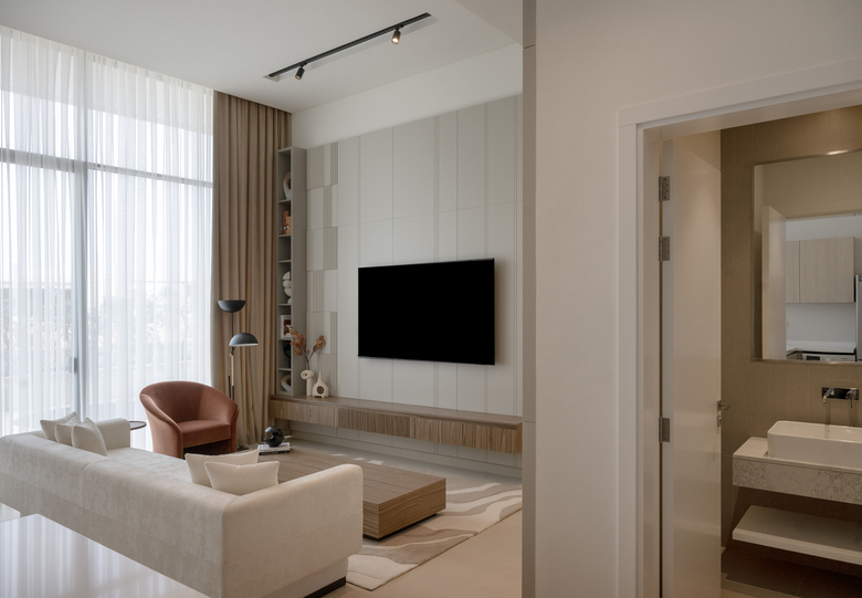 - A neutral palette exudes simple sophistication that highlights the luxurious finishing and ensures comfort and relaxation.